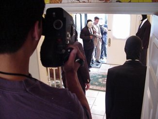 Acting Camera Man Cash Flagg, Jr. sets up a shot as Frank Prather hits his marks. |