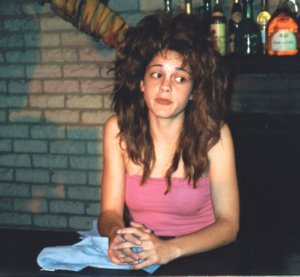 Lucifer Medez (Danny Fielding) and New Girl Suzy (Jen Dunkelberger) chat it up as Fish Cake Sloane (Ron Lincoln) watches. |
