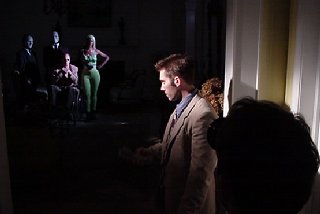 As Mal (Andrew Hewitt), Rita (Pat Williams) and goons look on, Jack (Frank Prather) makes a fateful call. |