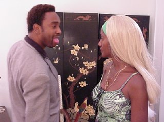 Magdick (Lou Zammichili) secretes his slimy, petroleum-based lubricant charms as he canoodles with an oily Thompson (James Washington) |
