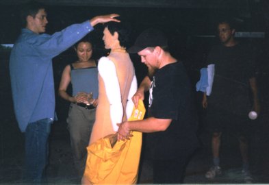 Hey Teen Gang- Last weekend's shoot went fine even with the 100 degree heat, 100% humidity and the heavy costumes we were all wearing. We shot all day in a parking garage that will remain nameless and no police came even with the weird looking goons running about, splattered blood and dummy tossing. Check out the behind-the-scene pictures in the meantime and pleeze buzz Kent or me if you've got any questions. Your pal-Alvin |