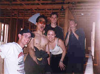Sweaty. Gooey. Moistey. That's what the cast and crew were by the end of the shoot last weekend. Once again, we braved the brutal, scorching heat wave, shielded only by our Sheer Manliness, a mysterious aura of machismo that also protected our sole female crew member who, through no fault of her own, was quite puffy and round at the time. |