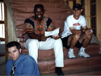Frank Prather (left) works his Stanislavsky while Mikal Wellon (center) and Kent Bye (right) look on. |